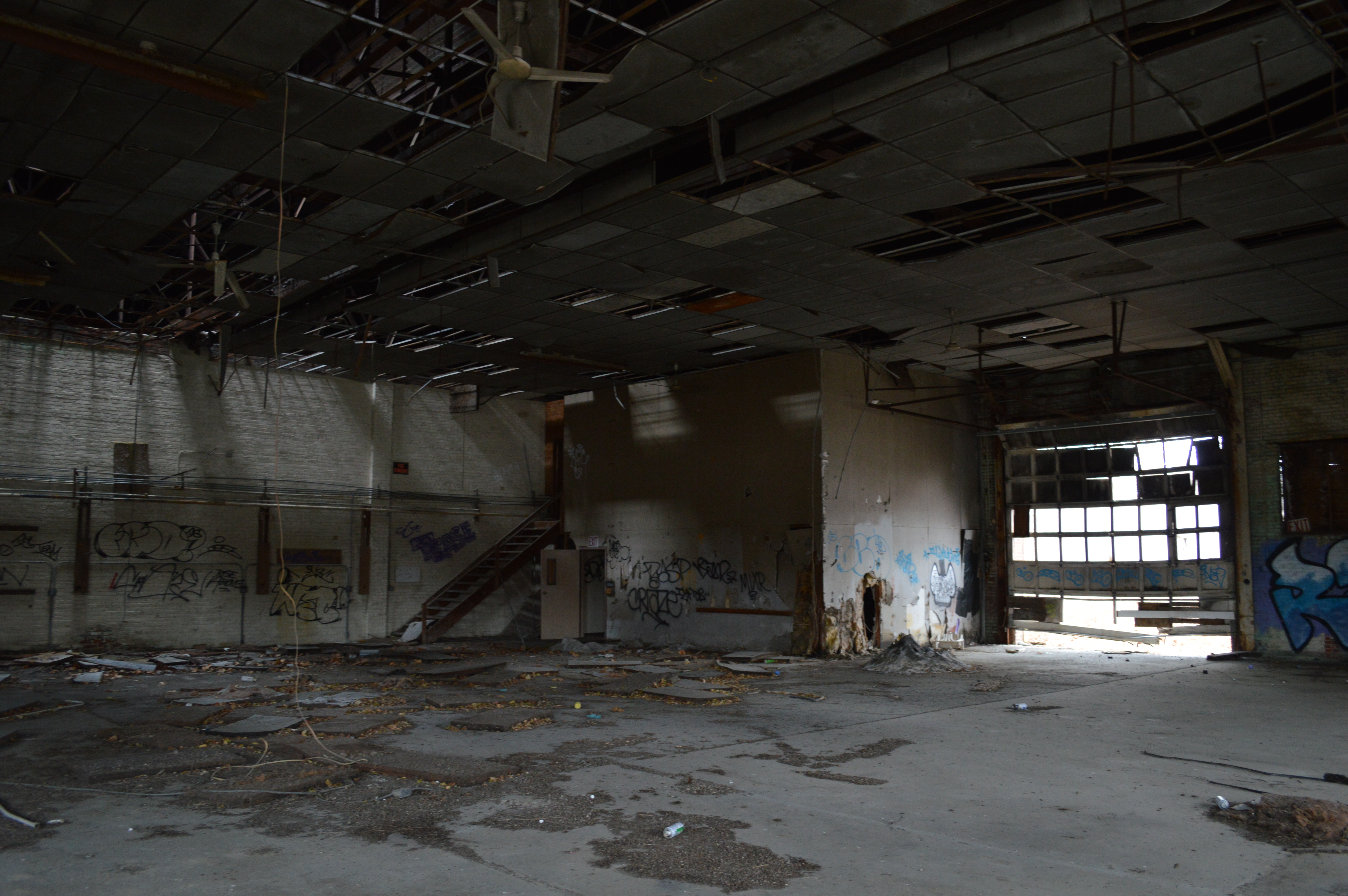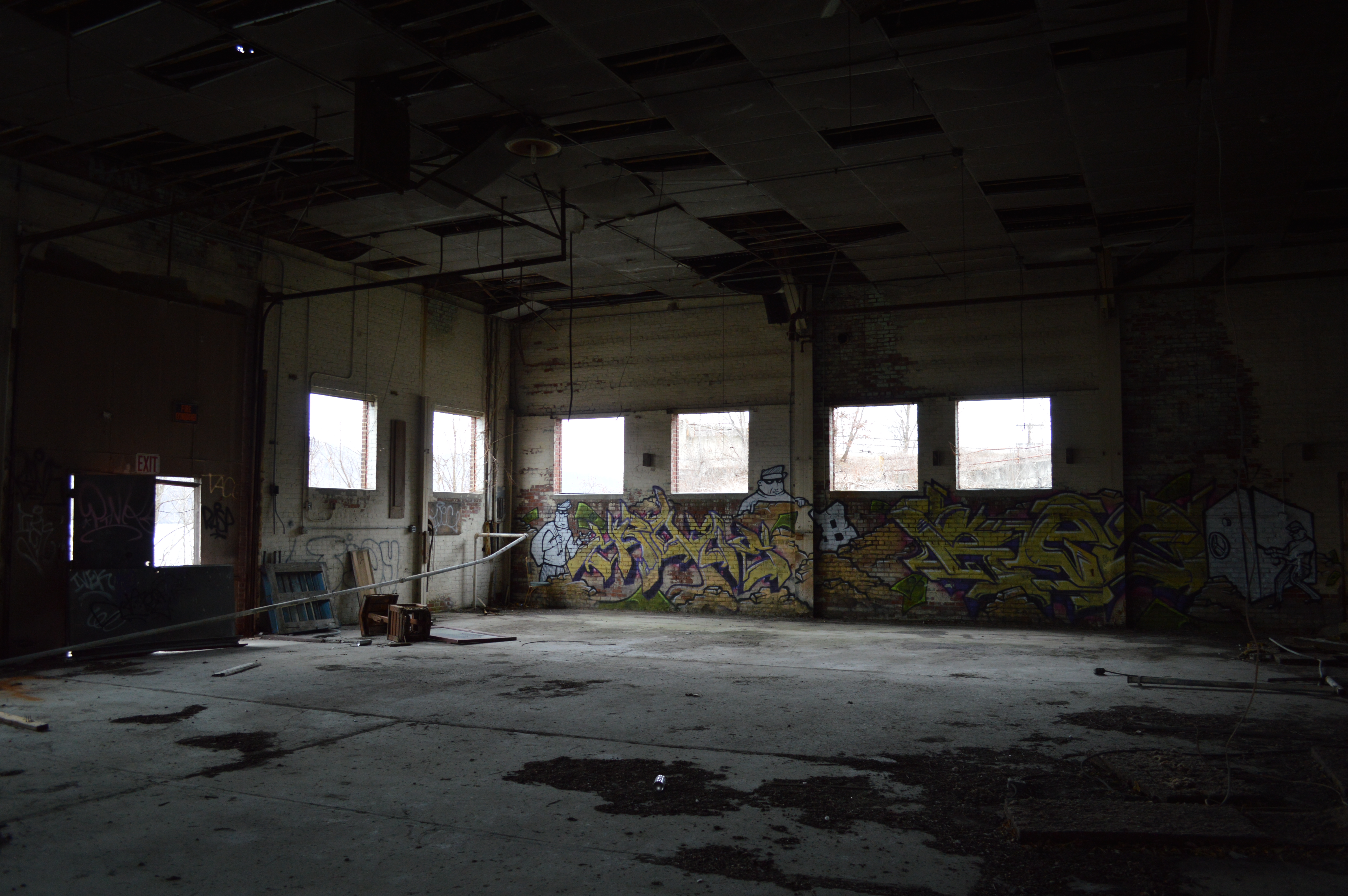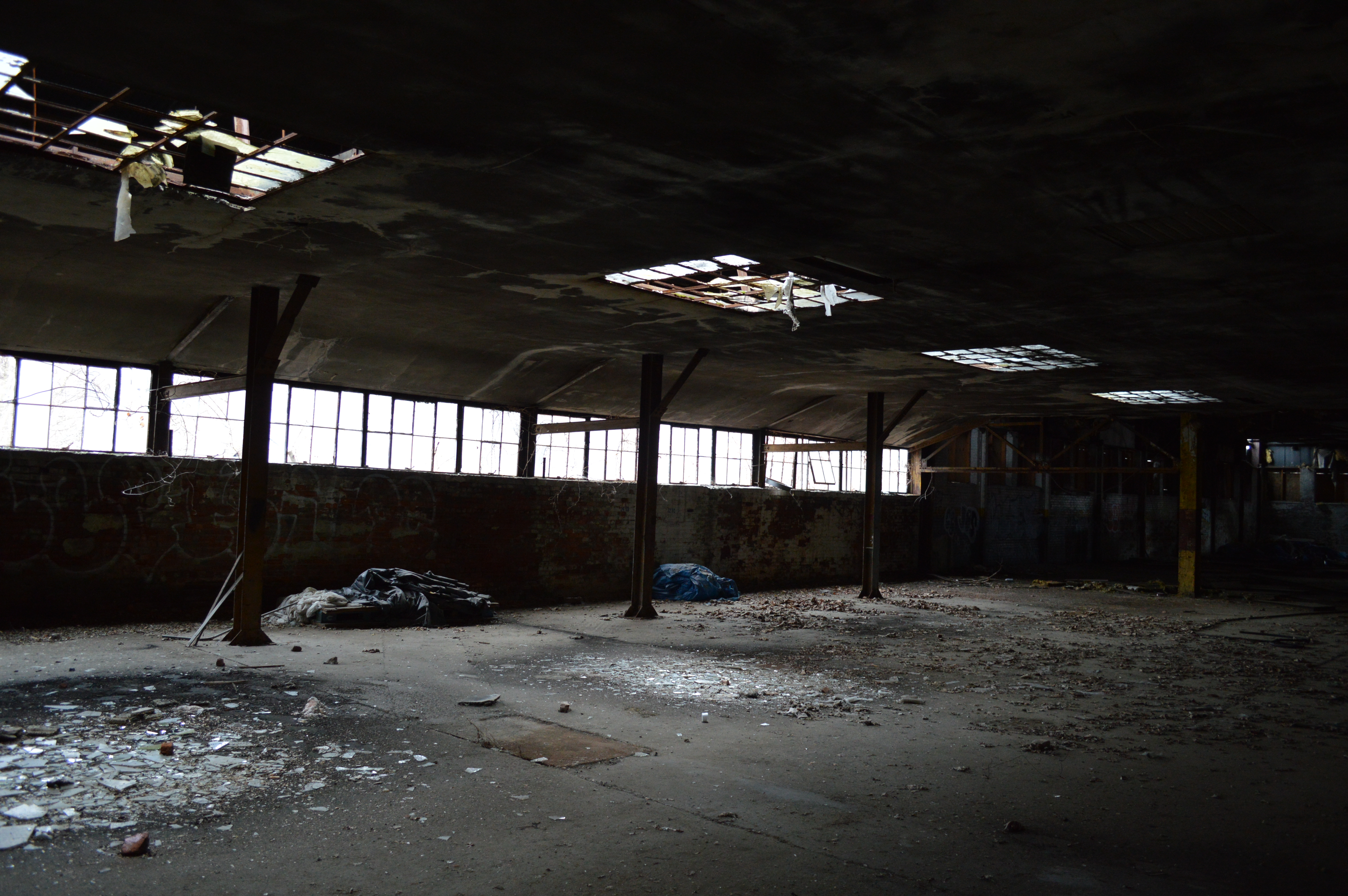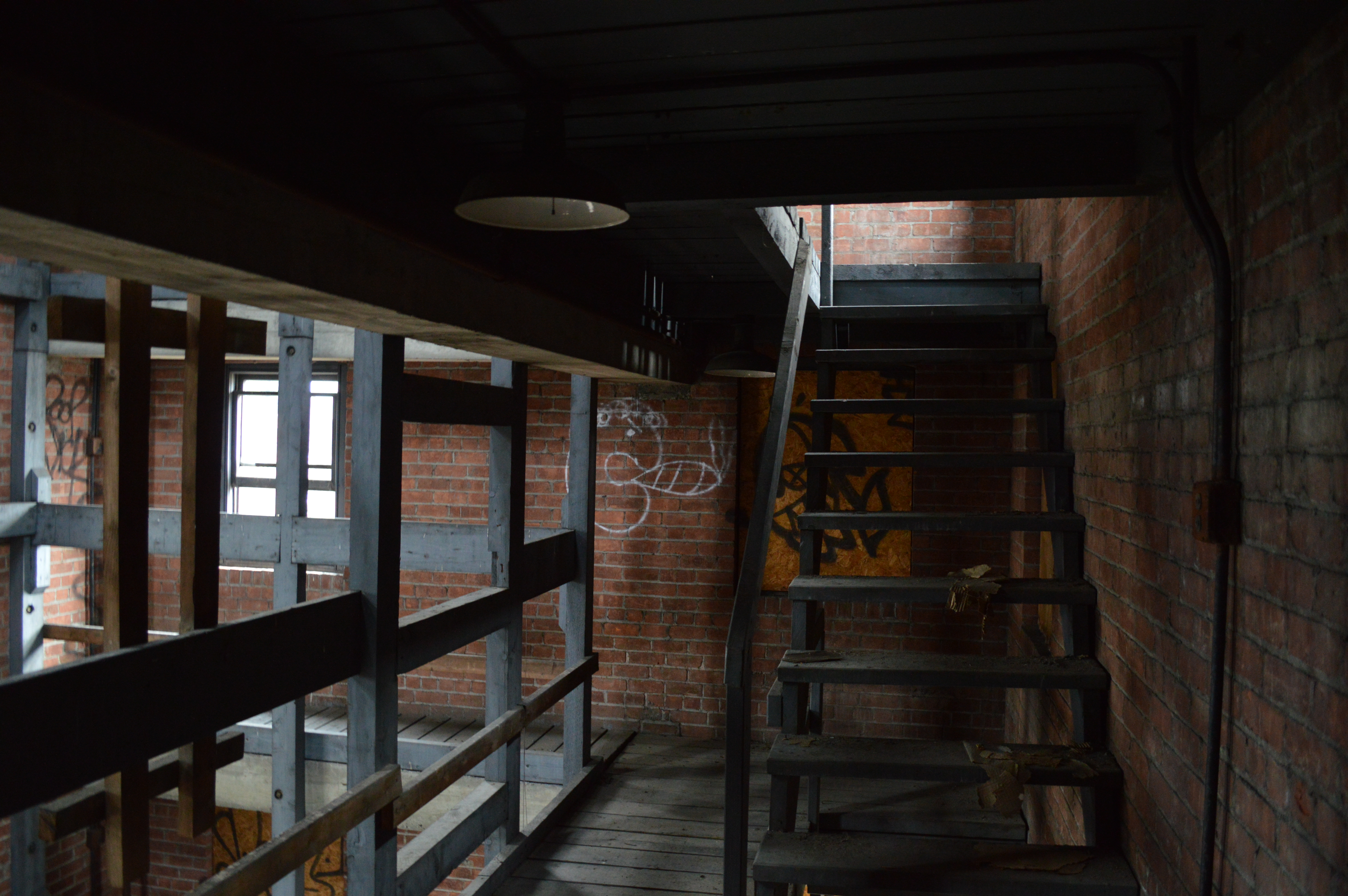 Climbing down from the tower, I proceeded into the warehouse space. The main factory, once between the tower and the warehouses, was demolished in 2005.