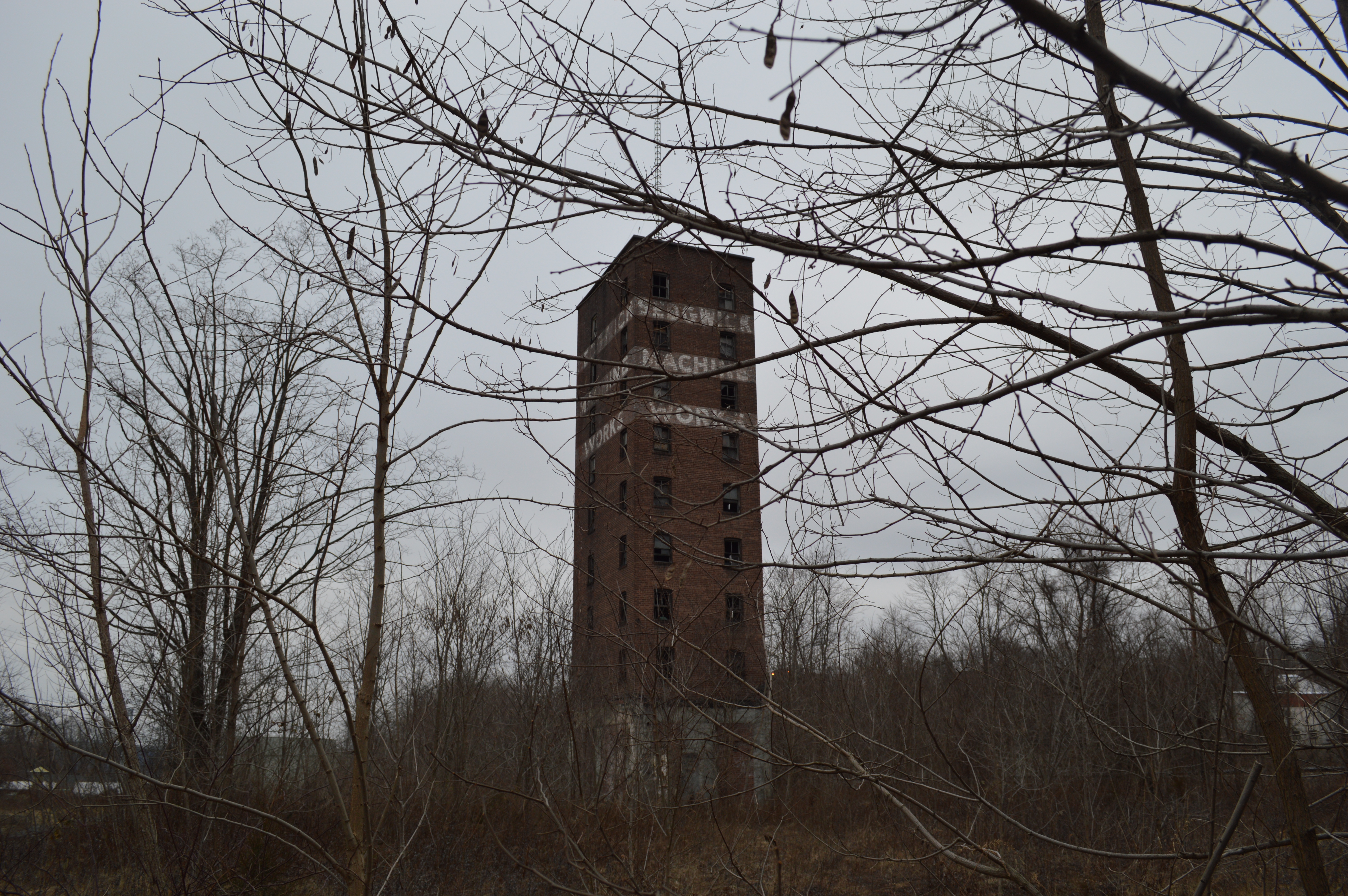 The most clearly visible part of the factory is a tall, thin tower, still bearing the Sedgwick name in worn paint. The tower was used as a place to test the elevators and dumbwaiters that the company was famous for. Although most of the tower’s entrances we’re boarded up, some boards had fallen away, and i managed to climb through. It is a long and dangerous way to the top of the tower, climbing from floor to floor up flights of wooden stairs that seem to get more and more brittle the farther up you go. Eventually, i reached the top floor.