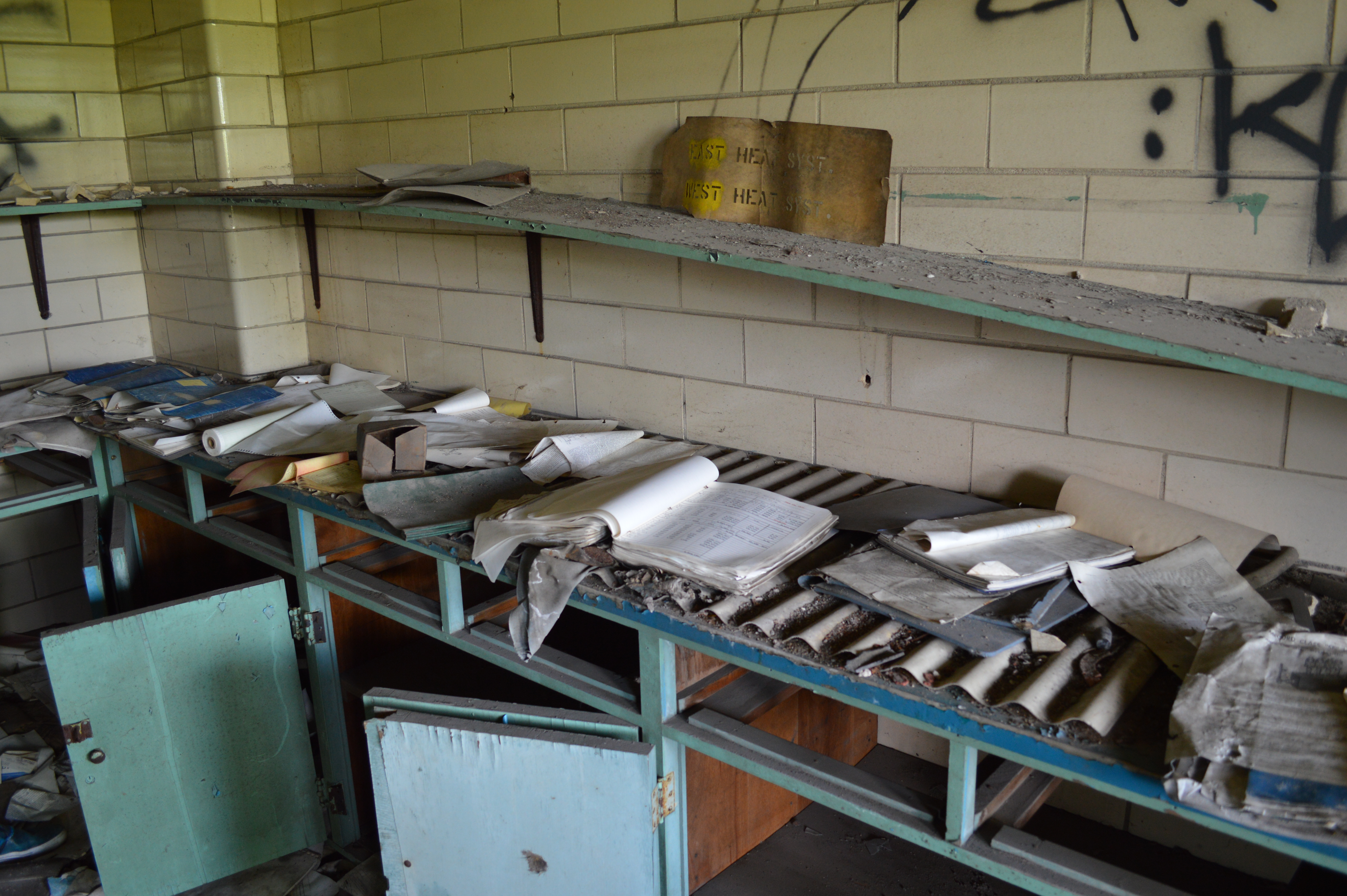 Next to the storehouse are two huge, empty warehouses. Getting in is easy, and there isn’t much inside, so the urban explorer would probably take little interest. However, they are filled with graffiti, so if that’s your thing stop by and check it out.